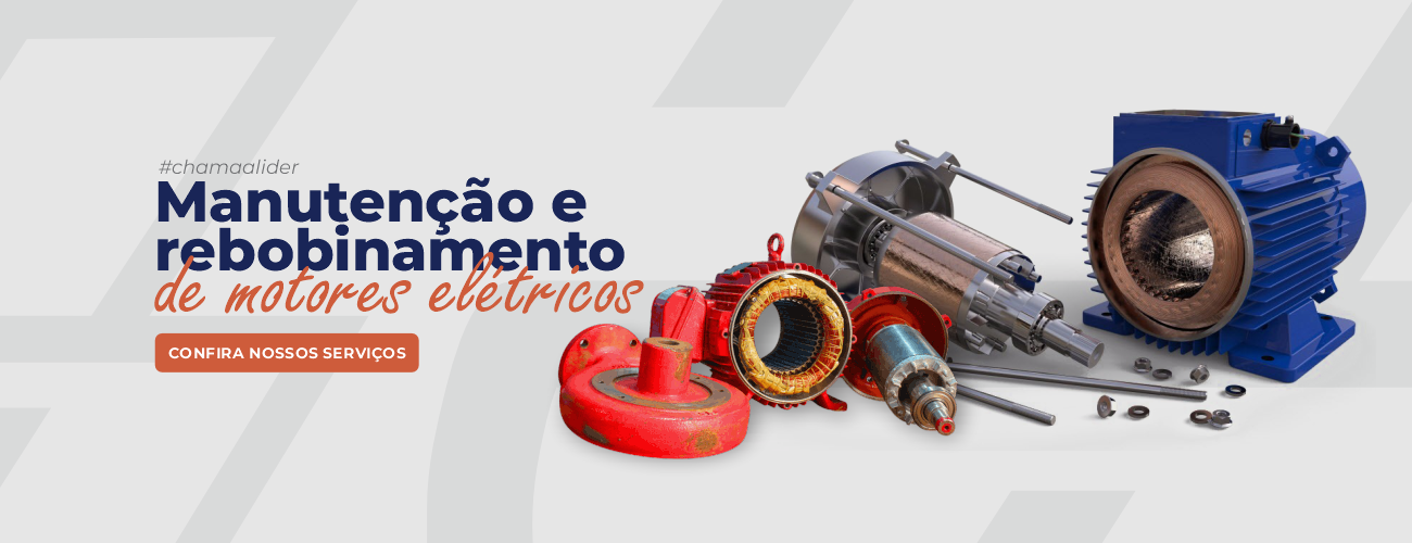 Somos a Líder Industrial, especializada em manutenção de motores, geradores, redutores, bombas e mais. Oferecemos serviços de rebobinamento, manutenção preventiva e corretiva, incluindo exaustores, compressores e talhas. Conte com a expertise da Líder para otimizar seus equipamentos. Entre em contato agora para soluções industriais!